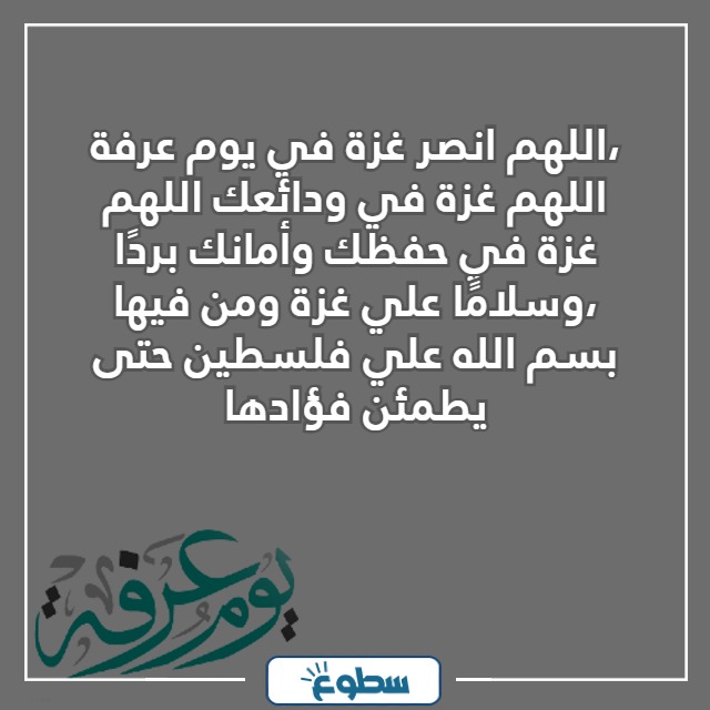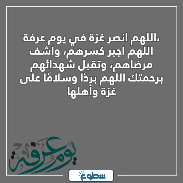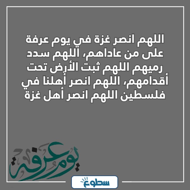 - اللهم انصر غزة في يوم عرفة، اللهم إنا نسألك باسمك القّهار أنْ تقهر من قهر إخواننا في غزة وفلسطين، ونسألك أن تنصرهم على القوم المجرمين.