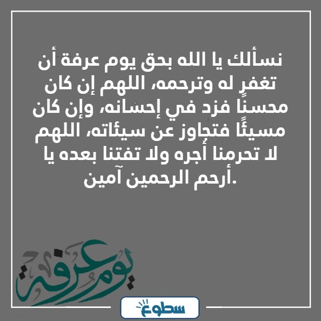- اللهم في يوم عرفة املأ قبر فقيدنا بالرضا، والنور، والفسحة، والسرور يا عزيز يا غفور.