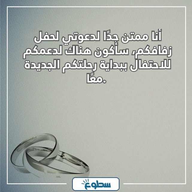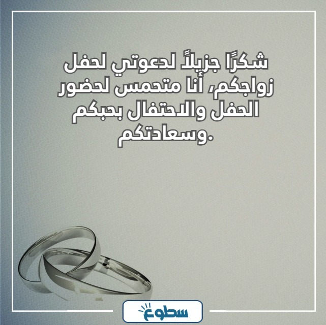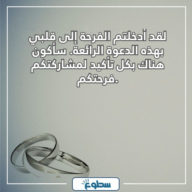 - أشكركم على دعوتي لحفل زفافكم، سأكون هناك بالتأكيد لأعبر لكم عن مدى سعادتي بحفل زواجكم.