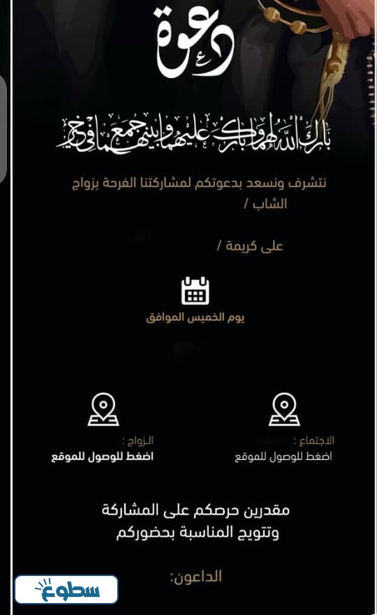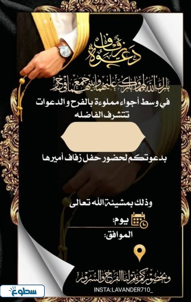 فيما يلي بطاقة دعوة زواج جاهزة للرجال: