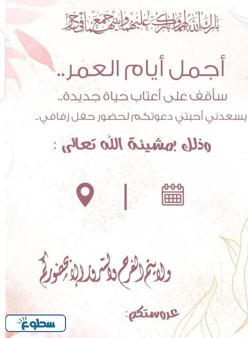 فيما يلي بطاقة دعوة زواج جاهزة للنساء: