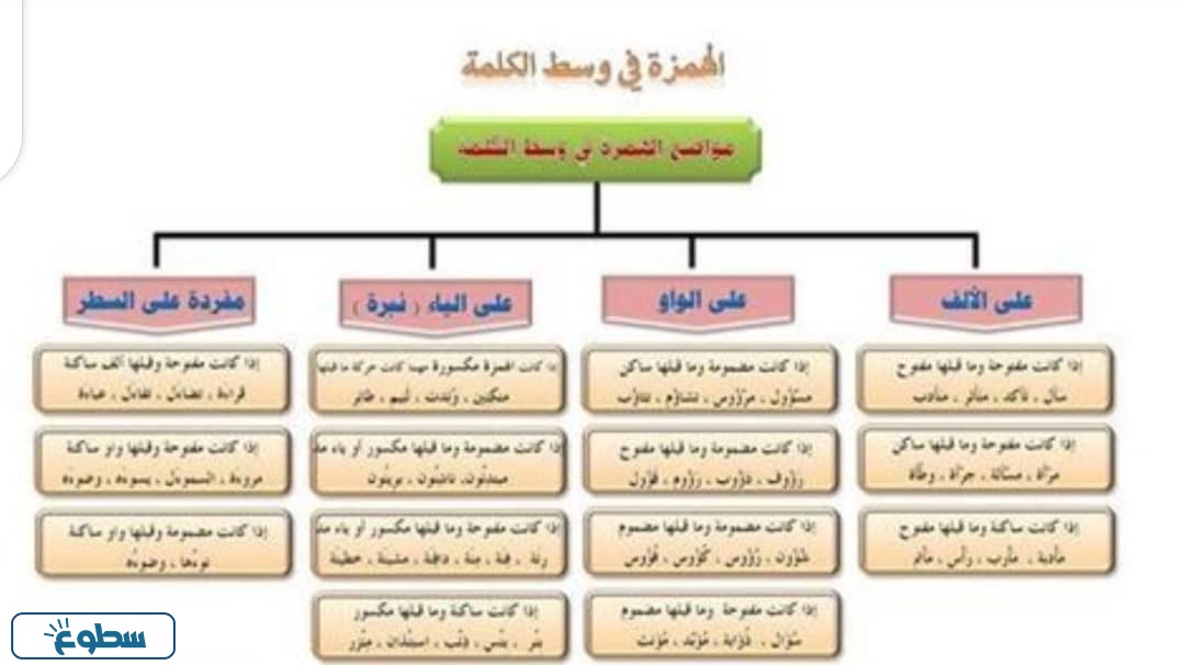 فيما يلي خريطة مفاهيم الهمزة المتوسطة: