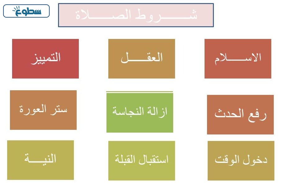 في ما يلي خريطة مفاهيم شروط الصلاة: