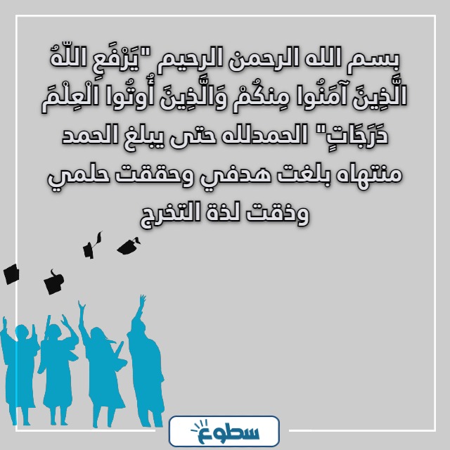 اقرأ أيضا: عبارات تخرج طفلي من الروضة | عبارات تخرج قصيرة تويتر | كلمات حفل التخرج جاهزة | اجمل عبارات تخرج قصيرة | عبارات تخرج قصيرة لنفسي | أجمل كلمة الخريجين من الثانوية العامة مميزة