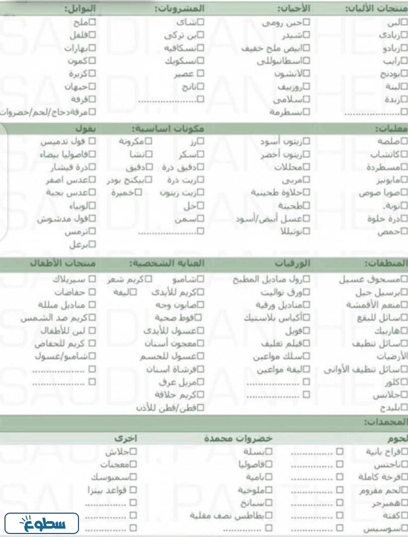 ورقة أغراض مقاضي رمضان مكتوبة كاملة