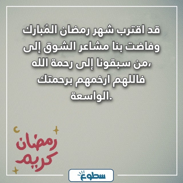 | العبارة الأولى | قد اقترب شهر الخير والرّحمة الذي كان يجمعنا بكم، قد اقتربت تلك الذّكريات السّعيدة المؤلمة التي لن تتكرّر فاللهم ارحم من سبقونا إليك قبل رمضان، واكتب لهم أجرًا كاملًا لا ينقص منه شيئًا. |