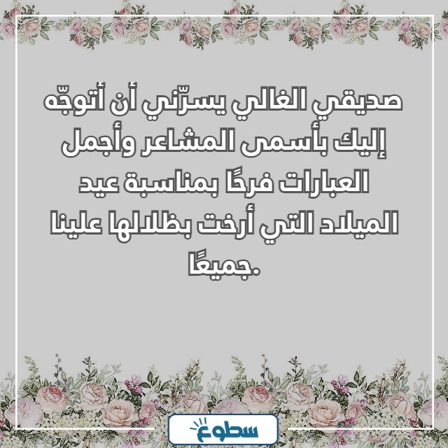 - يا فرحة القلب التي طالما كانت حاضرة في كلّ مناسبة، يسرّني في مناسبة عيد ميلادك أن أزفّ التّهاني والتَّبريكات، وأن أعبّر عن عظيم محبّتي وفرحتي في ذكرى ميلادك الجميلة، سنة سعيدة.